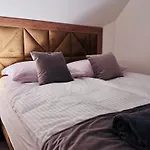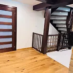 Complete with a dressing room, Dom Na Styku apartment is appointed with a sofa and a writing desk, and contemporary amenities such as a multi-channel television. A bathroom comprises a tub and a shower. A hair dryer and free toiletries can also be found.
